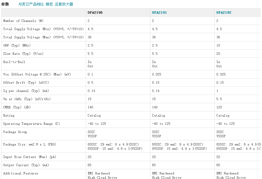 OPAx196 系列(OPA196、OPA2196 和 OPA4196)是新一代 36V 轨至轨 e-trim™运算放大器。