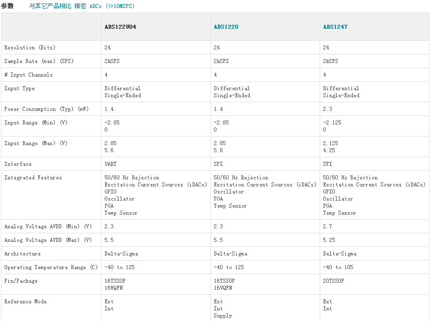 The ADS122U04 is offered in a leadless 16-pin WQFN or a 16-pin TSSOP package and is specified over a temperature range of –40°C to +125°C.