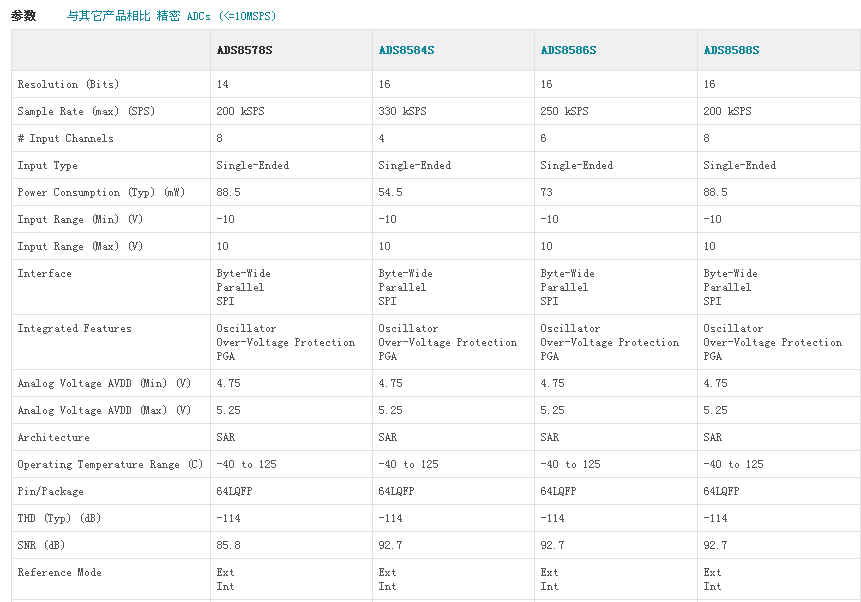ADS8578S 采用单一 5V 电源,并且可配置为接受 ±10V 或 ±5V 真正双极输入。高输入阻抗特性允许直连传感器和变压器,因此无需使用外部驱动器电路。此器件能够实现高性能、高精度以及零延迟转换,因此 ADS8578S 同样非常适用于工业自动化和控制 应用的理想选择。