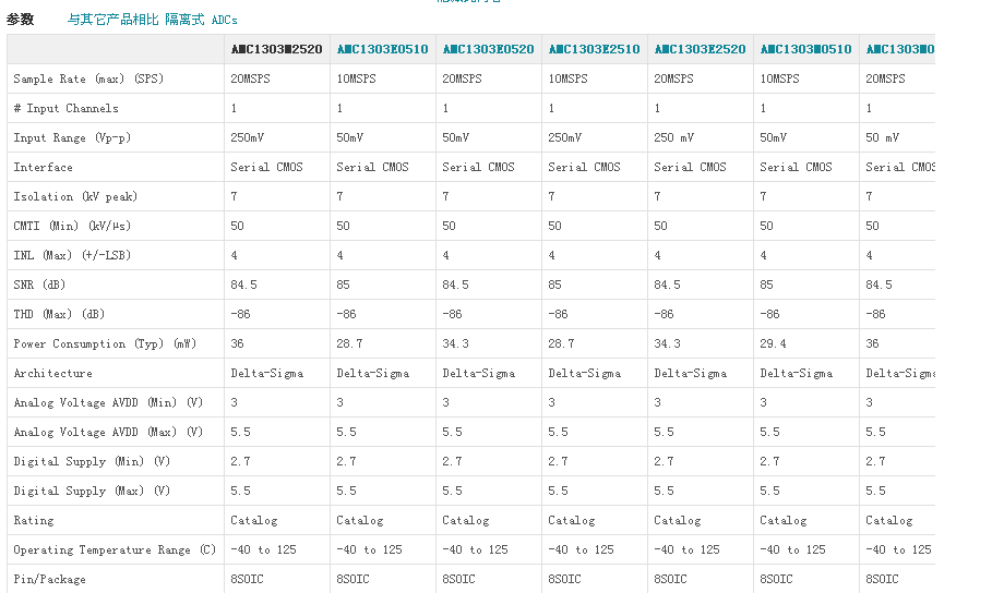 AMC1303(AMC1303x0510、AMC1303x0520、AMC1303x2510 和 AMC1303x2520)是一系列高精度 Δ-Σ 调制器,此调制器的输出与输入电路由抗电磁干扰性能极强的电容式双隔离层隔开。该隔离层经过认证,可以按照 DIN V VDE V 0884-11 和 UL1577 标准提供高达 7000 VPK 的增强型隔离。与隔离式电源结合使用时,该隔离式调制器可将以不同共模电压等级运行的系统的各器件隔开,并防止较低电压器件损坏。