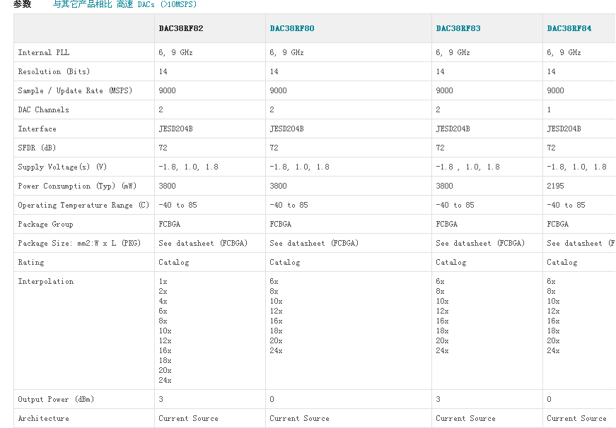 The DAC38RF82 and DAC38RF89 are high performance, wide bandwidth RF-sampling digital-to-analog (DACs) that are capable of dual channel input data rate up to 3.33 GSPS or single-channel operation with 8-bits up to 9-GSPS. The devices have a low power JESD204B Interface with up to 8 lanes, with a maximum bit rate of 12.5 Gbps.