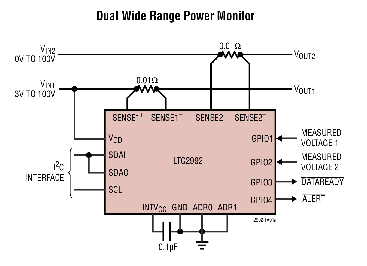 LTC2992 - 双通道、宽范围功率监视器