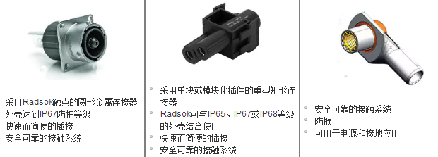 在RADSOK器件或大量具有IP防护等级的连接器外壳中设有密封 (Sealtac™) 和高压热断电选项,从而保护接触区域