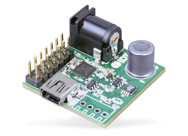IDT SMOD7xx评估套件用于轻松评估IDT SGAS气体传感器。该套件包括一个基于MCU的SMOD7xx智能传感模块,该模块设有SGAS701、SGAS707或SGAS711传感器。该模块涵盖SGAS传感器的所有测量与控制方面。每款经过出厂配置的SMOD评估模块均具有特定型号SGAS传感器功能。SMOD板可通过双向USB连接至Windows PC。传感器响应可通过自身电阻单位以及线性化的浓度单位进行测量。传感器运行参数可自定义。