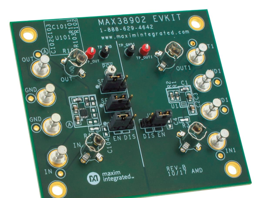 可评估采用8引脚 (2mmx2mm) TDFN封装的MAX38902A/B IC