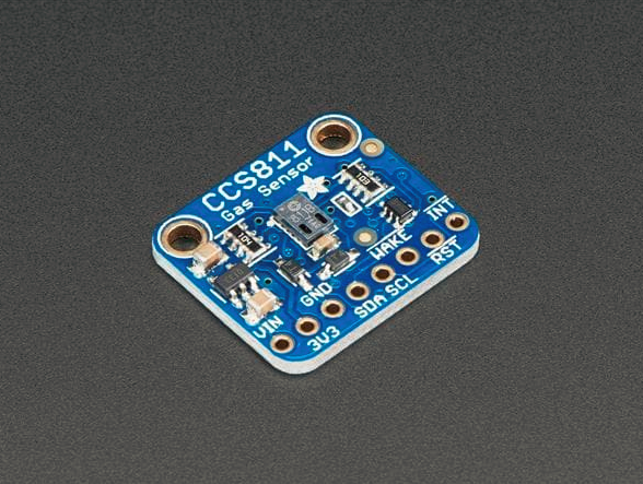Adafruit CCS811 Air Quality Sensor Breakout Board can detect a wide range of Volatile Organic Compounds (VOCs) and is intended for indoor air quality monitoring. This development board has a standard hot-plate MOX sensor, a microcontroller that reads the analog voltage, and an I2C interface to read from. The CCS811 sensor board measures equivalent calculated carbon-dioxide (eCO2) concentration within a range of 400 to 8192ppm. This board is also capable of measuring Total Volatile Organic Compound (TVOC) concentration within a range of 0 to 1187ppb. The CCS811 air quality sensor board in action can detect alcohols, aldehydes, ketones, organic acids, amines, aliphatic and aromatic hydrocarbons. This sensor board supports multiple drive modes to take a measurement every 1, 10, 60seconds, or every 250milliseconds