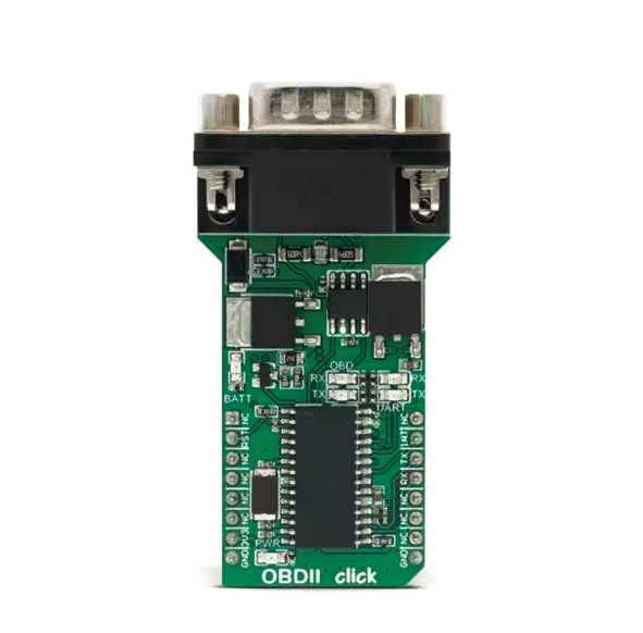 MikroElektronika MIKROE-2452 OBDII click板可用于发挥车内诊断系统的潜能,具有ScanTool technologies开发的STN1110多协议OBD转UART接口。该click板可以通过多个OBD II诊断协议与汽车的电子控制单元 (ECU) 进行通信。这些协议包括CAN、K LINE、L LINE和J1850。STN1110 IC用于处理MCU通过UART接口发送的请求,并返回ECU网络节点的响应。