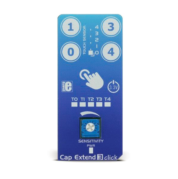 MikroElektronika MIKROE-2883 Cap Extend 3 Click板设有四个电容式传感器焊盘,可以隔着各种材料感应触摸。该Click板采用专有的金属表面电容式技术,可以隔着塑料、木材甚至金属感应触摸。另外,该Click板还设有一个用于连接外部传感器的连接器。该click板支持实现各种人机界面,以及将触摸敏感按钮集成到各种前面板中。
