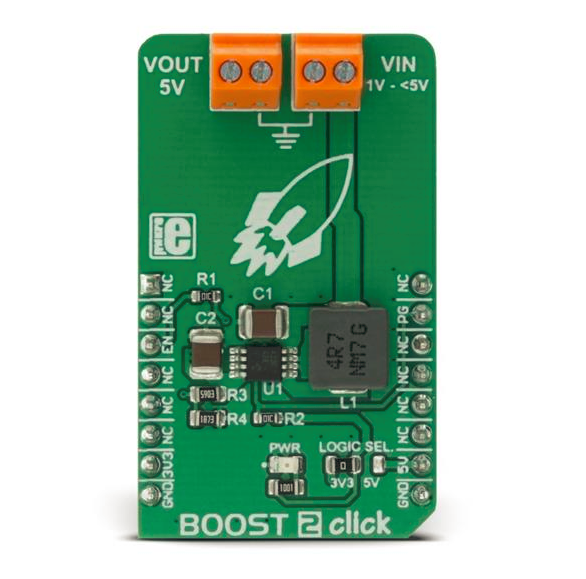 MikroElektronika MIKROE-2894 BOOST 2 Click板是一款直流-直流升压稳压器,具有5V固定输出。该Click板具有极高的效率、低噪声以及抗振铃电压输出。电压升压过程起始阶段的输入电压低至0.9V。MIKROE-2894 Click板还具有浪涌电流限制功能、内部软启动以及真正断开选项,可最大限度地降低功耗。