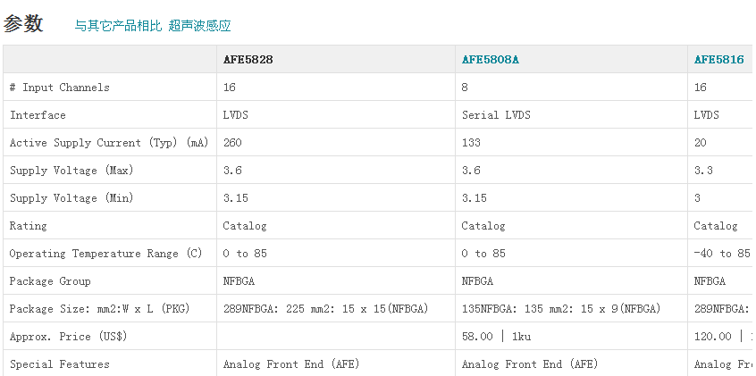 The AFE5828 device is a highly-integrated, analog front-end (AFE) solutions specifically designed for ultrasound systems where high performance, low power, and small size are required.
