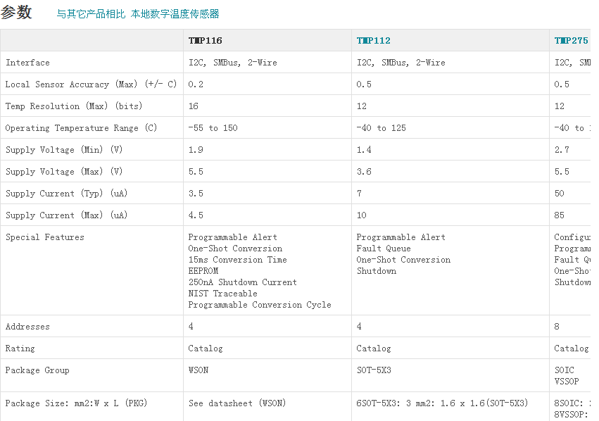 TMP116 不仅节省功耗,而且消耗最低电流,能够最大限度减少自发热并提高测量精度。TMP116 在 1.9V 至 5.5V 电压范围内运行,电流消耗通常为 3.5µA。