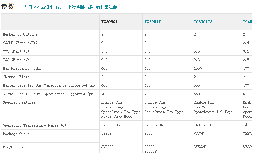 TCA9801 能够在不使用静态电压偏移或增量偏移的情况下提供真正的缓冲(而不是 pass-FET 解决方案)。这意味着 TCA9801 的 A 侧和 B 侧上的 VOL 极低(约为 0.2V),有助于消除由于固定的 VIL 阈值导致的通信问题。TCA9801 的另一个重要特性是没有电源定序要求或电源依赖性。VCCA 可以大于、小于或等于 VCCB。这使得系统设计人员可以灵活地使用 TCA9801。