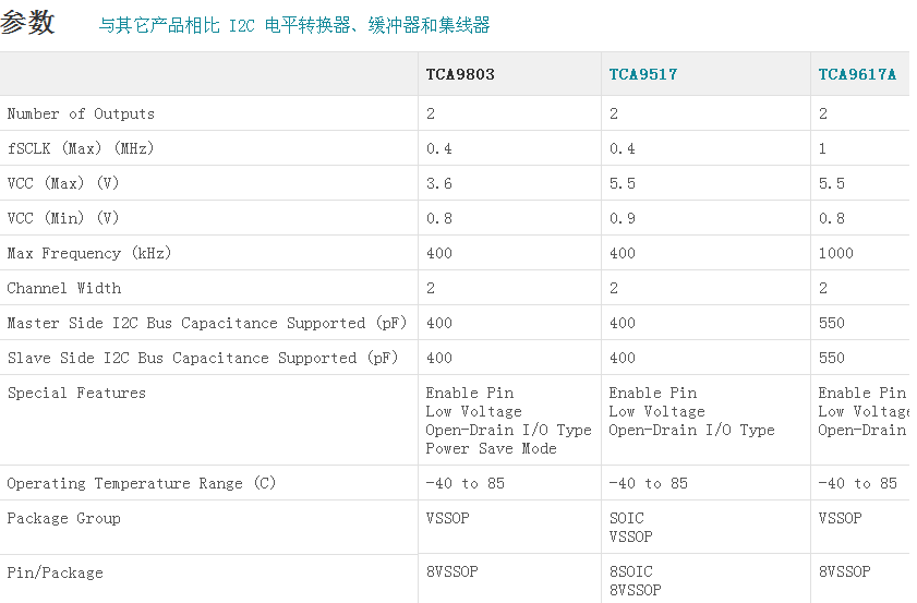 TCA9803 能够在不使用静态电压偏移或增量偏移的情况下提供真正的缓冲(而不是 pass-FET 解决方案)。这意味着 TCA9803 的 A 侧和 B 侧上的 VOL 极低(约为 0.2V),有助于消除由于固定的 VIL 阈值导致的通信问题。TCA9803 的另一个重要特性是没有电源定序要求或电源依赖性。VCCA 可以大于、小于或等于 VCCB。这使得系统设计人员可以灵活地使用 TCA9803。