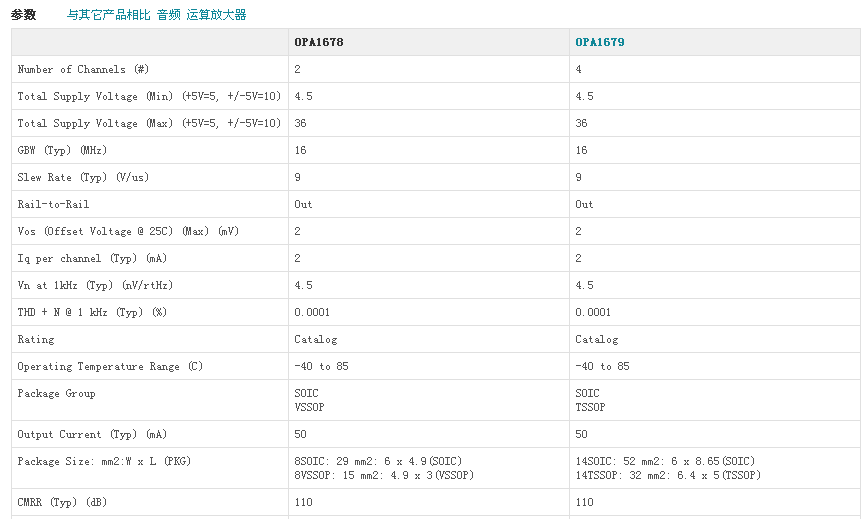 OPA1678(双通道)和 OPA1679(四通道)运算放大器较音频电路中常用的传统运算放大器而言,可提供更高的系统级性能。OPA167x 放大器在 1kHz 时可实现 4.5-nV/√Hz 的低噪声密度和 0.0001% 的低失真度,从而提高了音频信号保真度。它们在 2kΩ 负载下还提供 800mV 范围内的轨至轨输出摆幅,从而增加余量并实现动态范围最大化。
